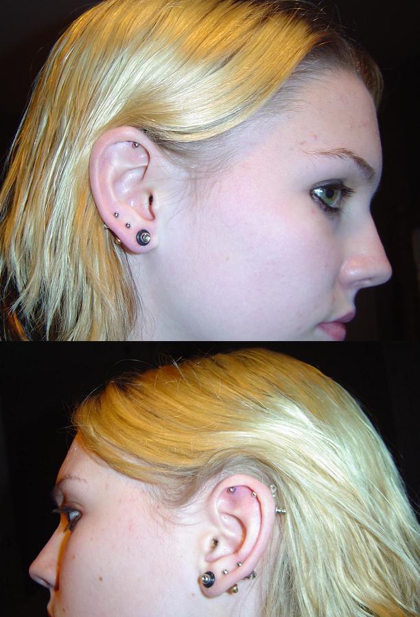 Hey I got some new piercings today... not a big deal they're just on my ears... the ones at the very top.. u can see pics below.. anyone else got some cool piercing pics they wanna share?