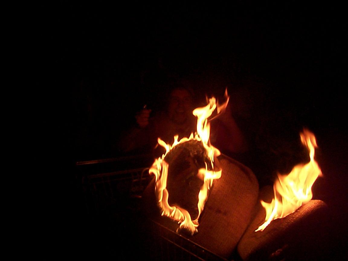 This is a picture my cousin just sent me of a burning cart.