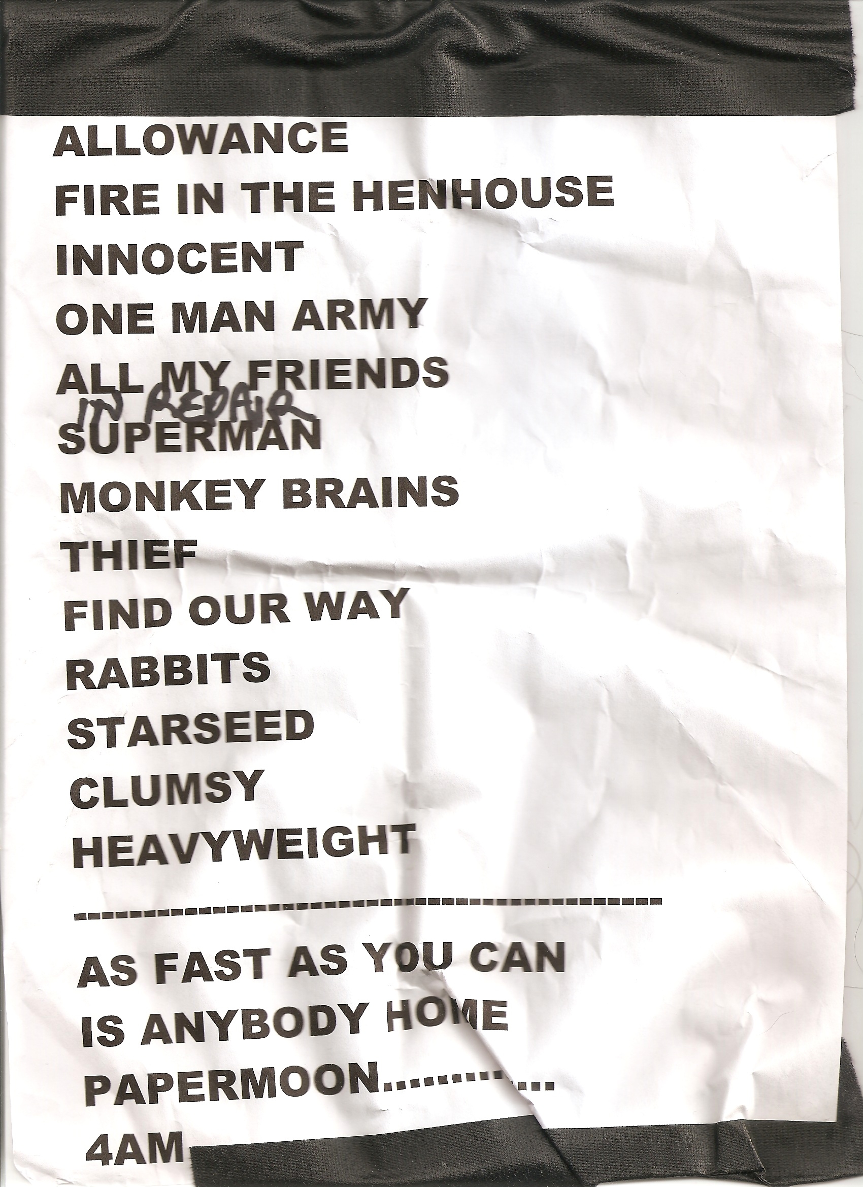 Anybody from here go to the show and know the set list? I try'd looking for it but couldn't find it.