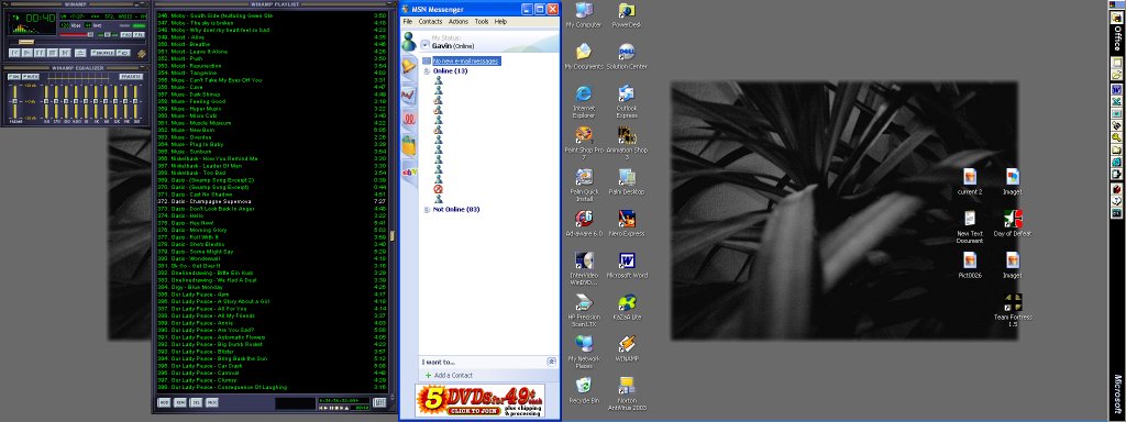This is my desktop. You have to understand i have dual monitors, so it is actually split at the msn window.